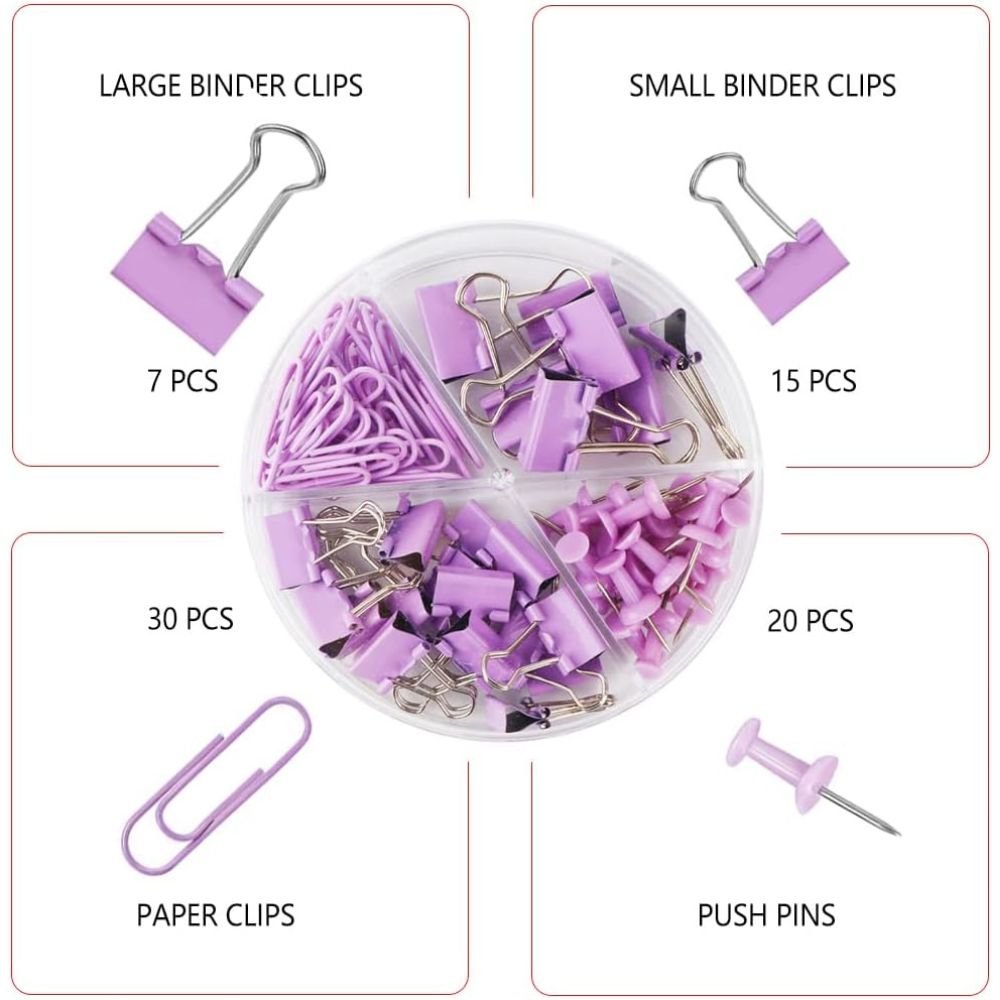 Crafted with durable, rust-resistant metal and coated in a vivid purple hue, these clips are both strong and stylish. From classrooms to corporate cubicles, this set is perfect for keeping everything neat, tidy, and totally you.